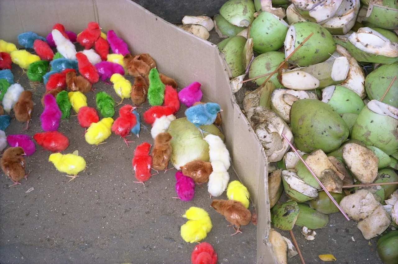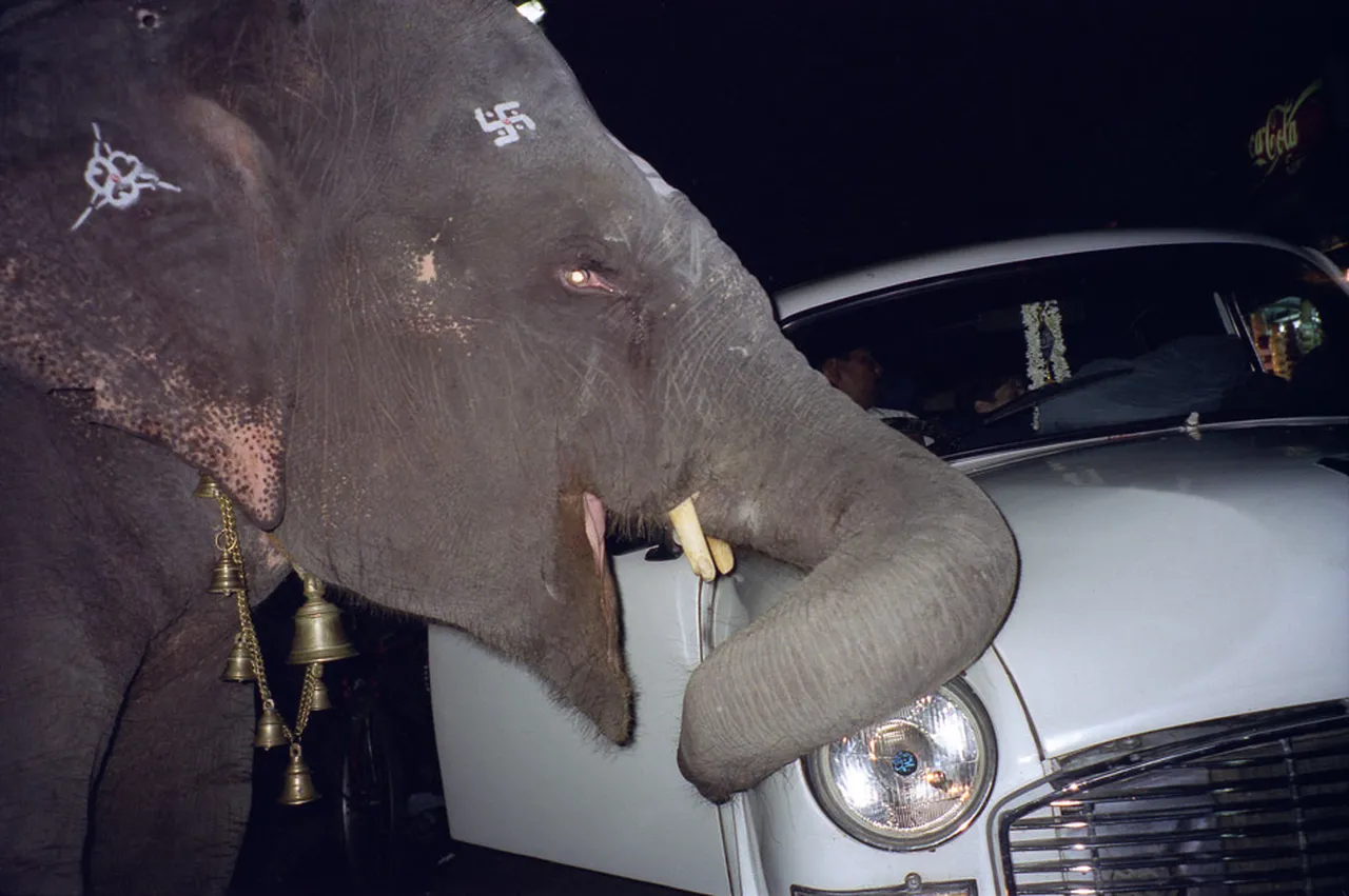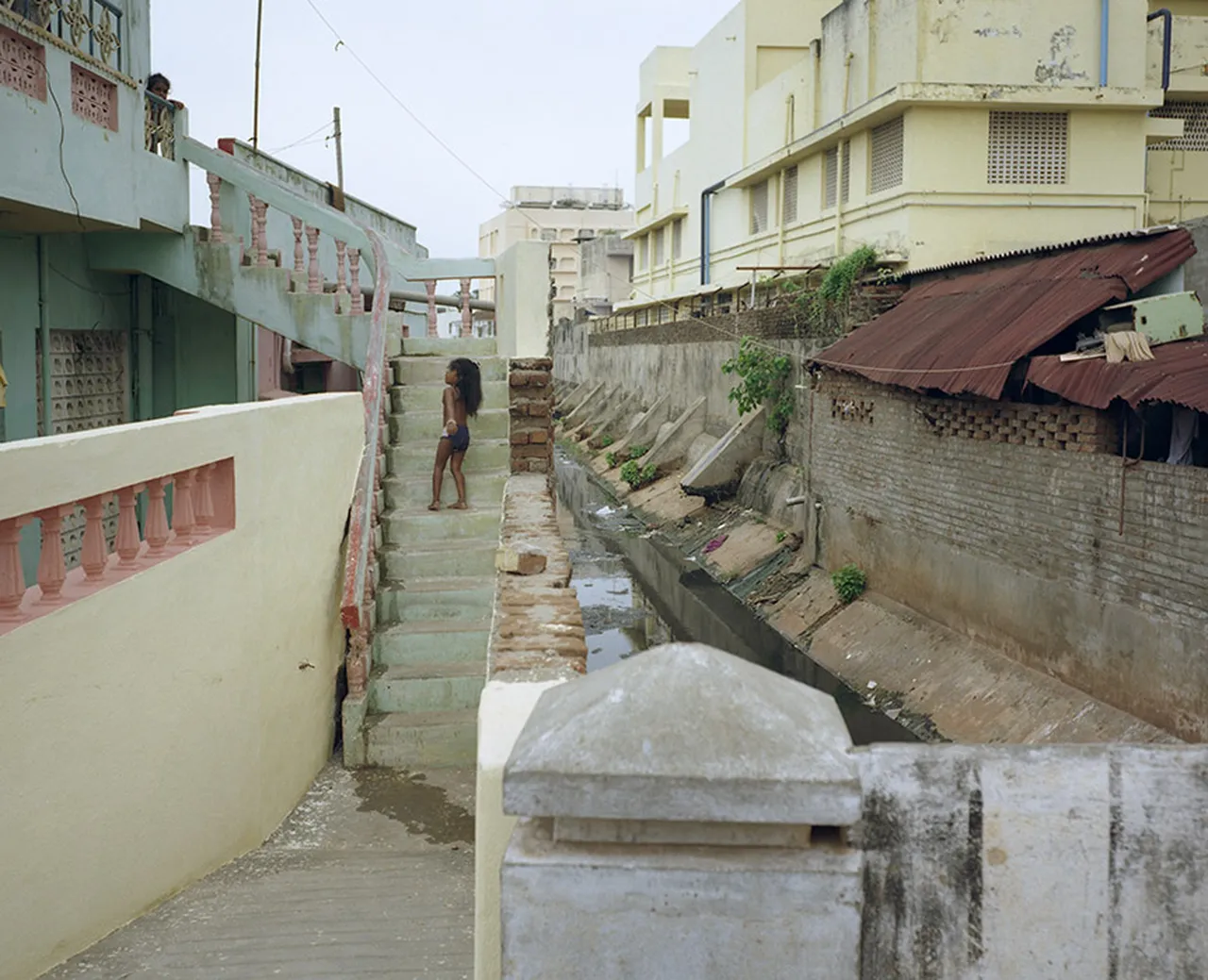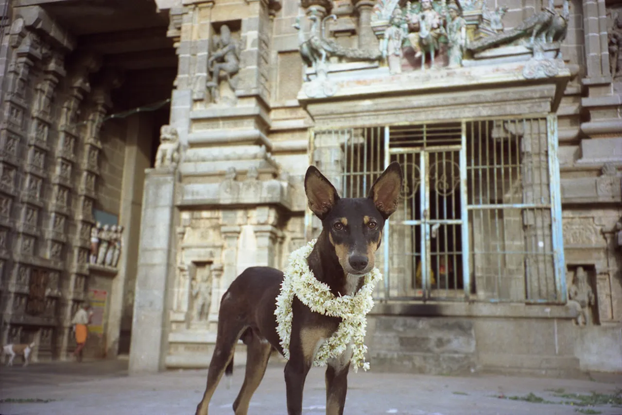 Unfinished buildings, animals, streets, temples and people in southern India.