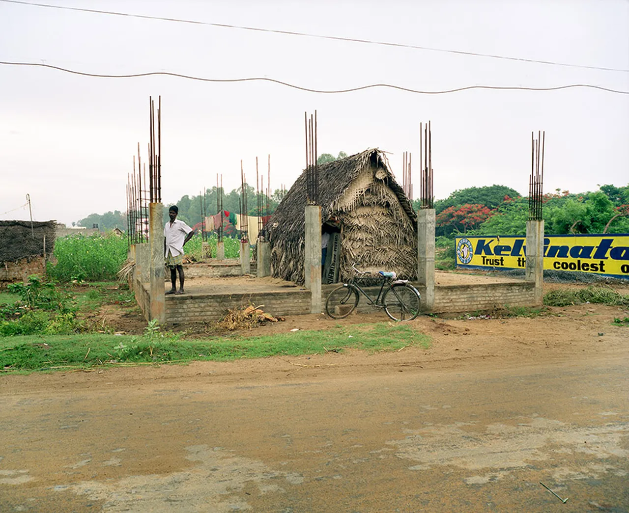 Unfertige Bauten, Tiere, Straßen, Tempel und Menschen in Südindien.